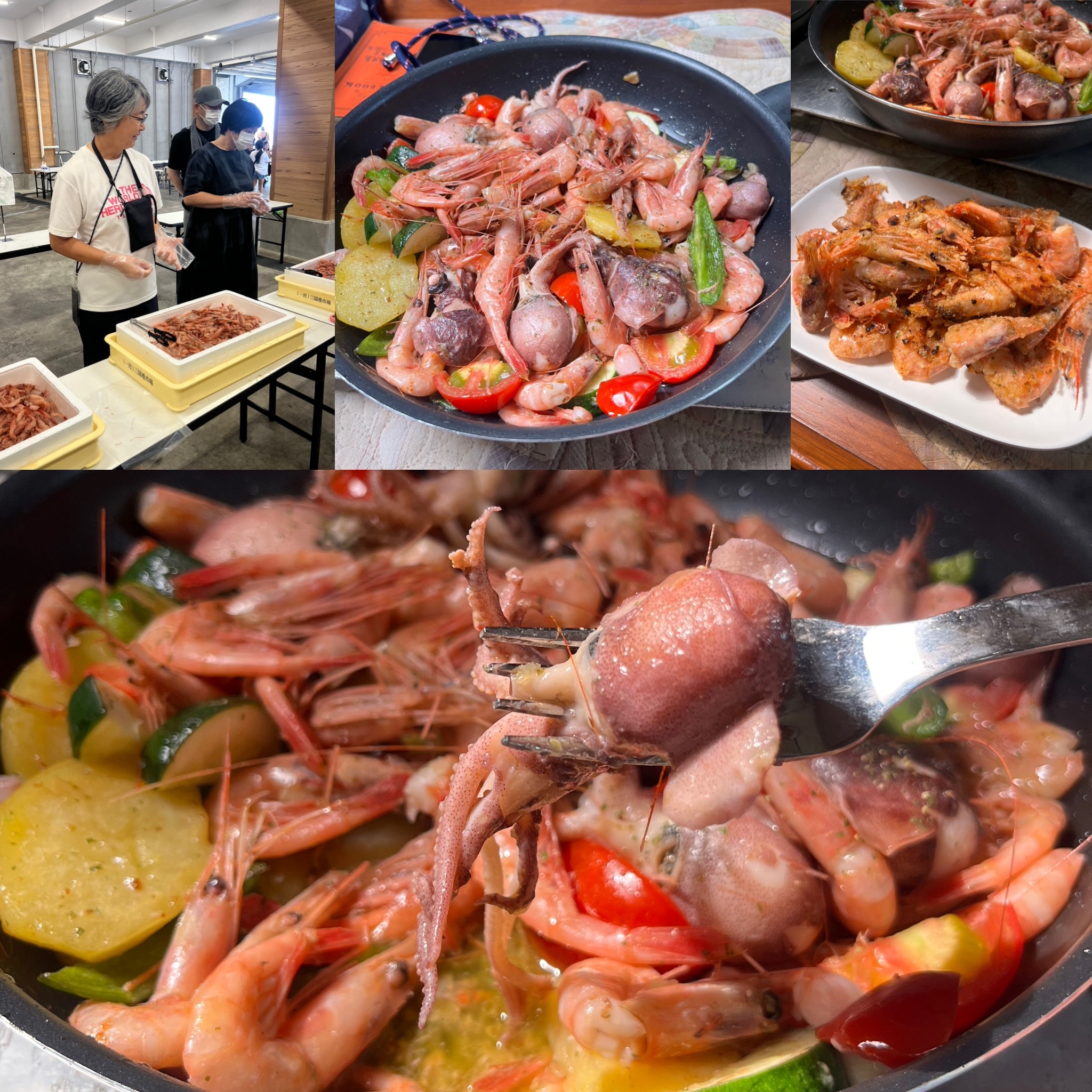 ランチは早速甘エビと耳ダコを使ってアヒージョ風とガーリック炒めでいただきました。。