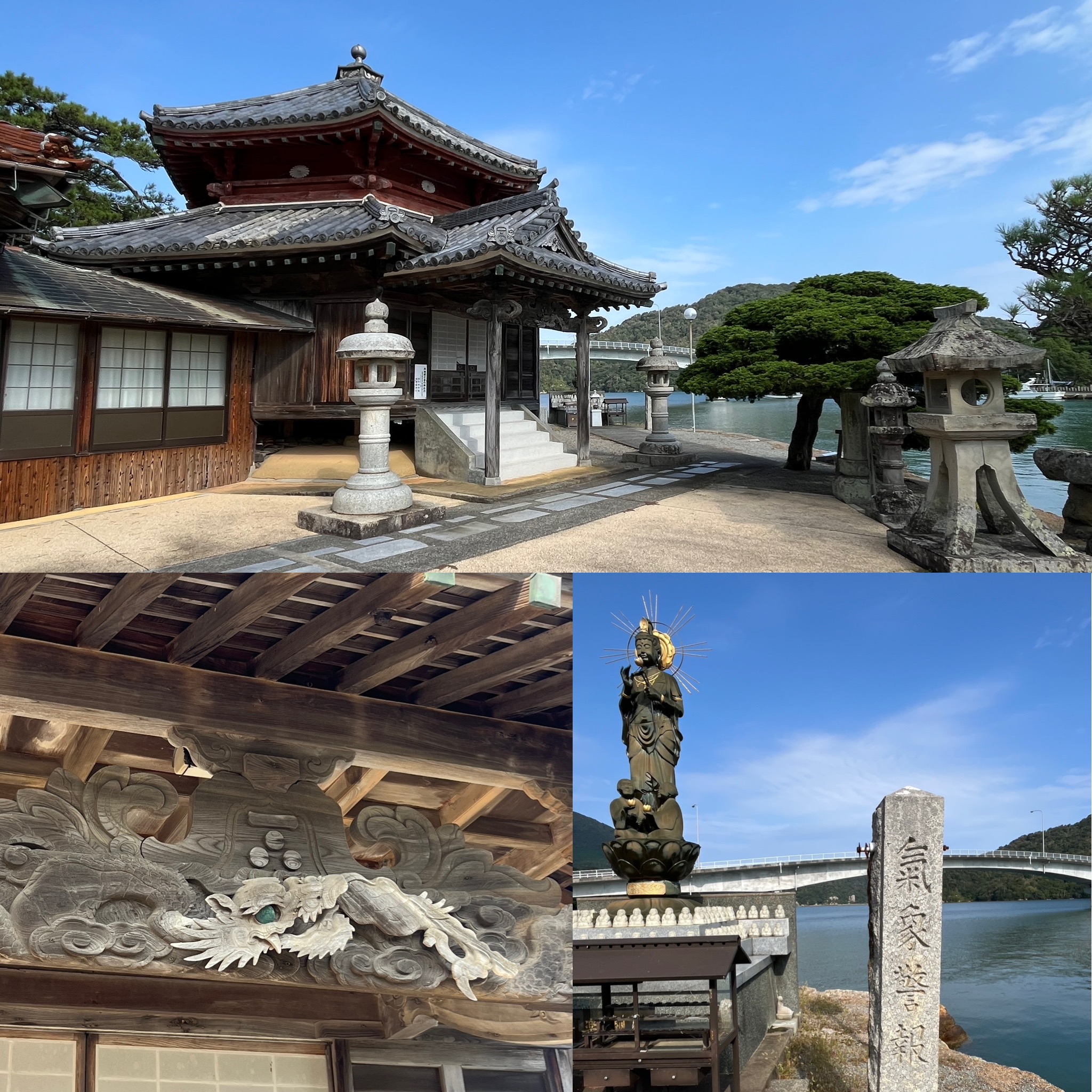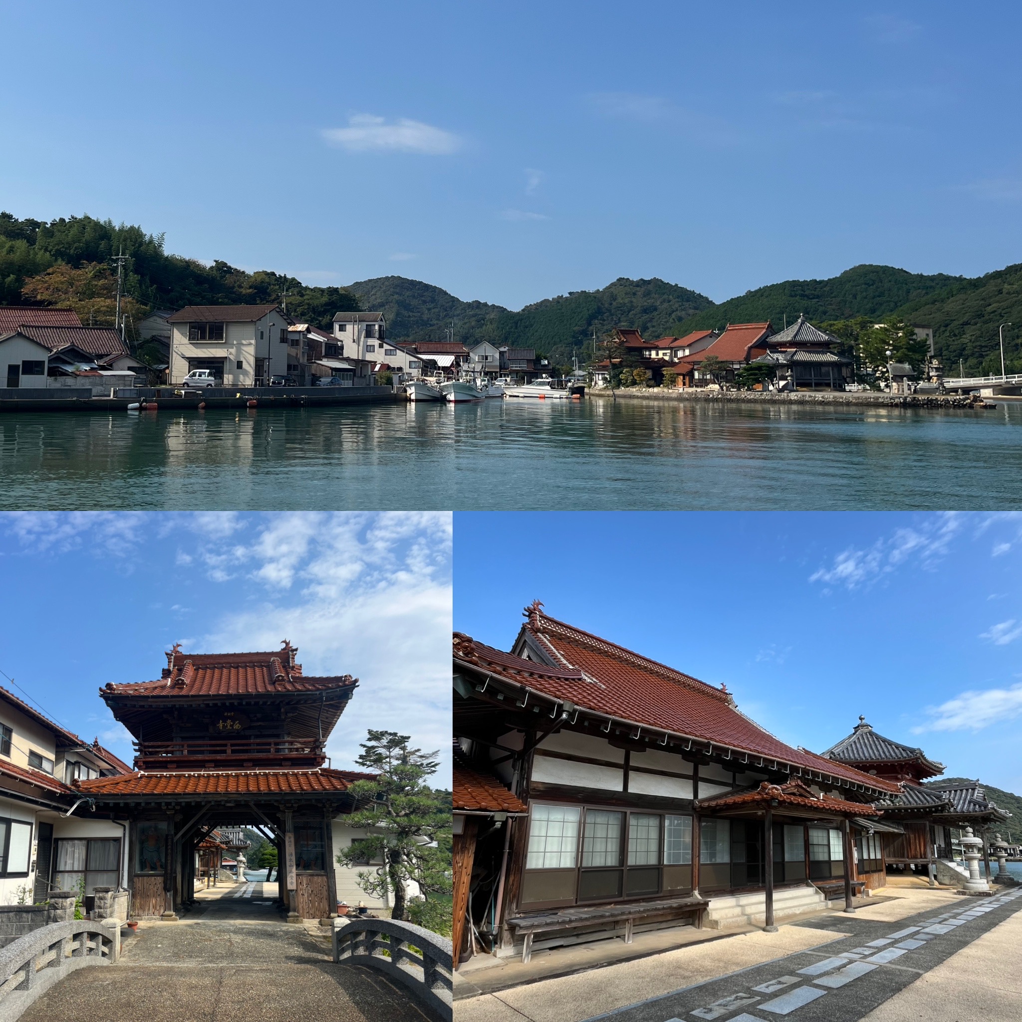 > 街並みと繋がる浮島には立派な山門や県内唯一の六角堂がある寺院は江戸時代から続く建物で港町の風景に溶け込んで素晴らしかったです。
