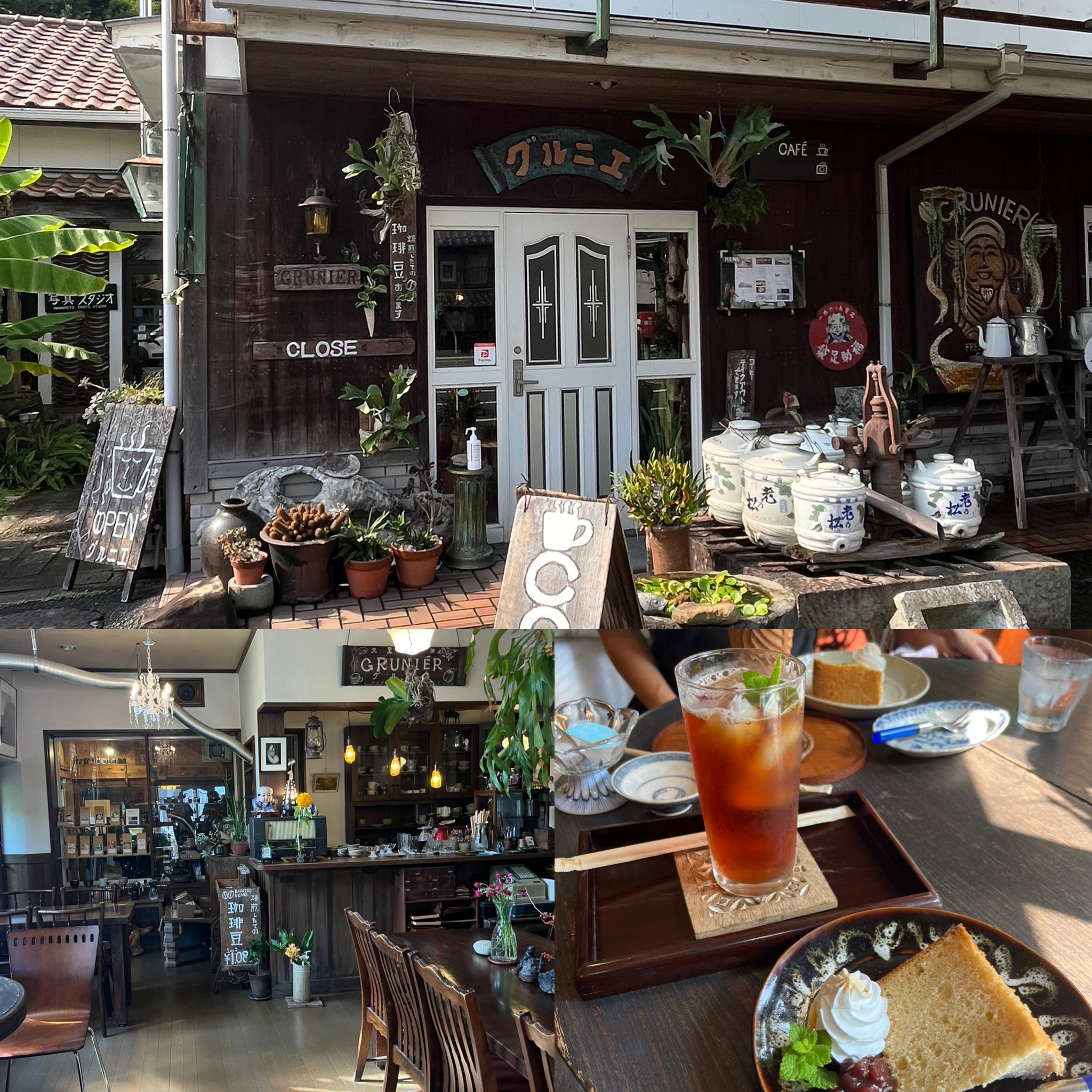 元、北前船船主の家系、昭和30年代までは造り酒屋だった喫茶店兼、写真スタジオ兼、薬局。街唯一の喫茶「グルニエ」