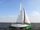 コース320度へ3.5kt 風・SW2〜3 1012hPa 天気・C&Qが3回 波高・1〜2m 28℃ 朝、風はESE その後、N〜SWに回った それでメインセールのロープが絡んで、メインシートトラベラーが壊れました (JH2OYY)