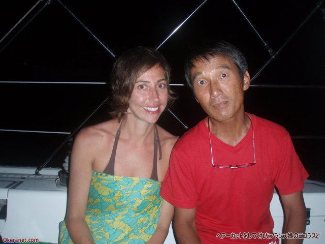 一人一人自己紹介と自分のクルージング・ストーリーを話していきます。 昨日は、フランスから来ている若い女性インテリア・デザイナーのニコラスが、ビキニのグッドプロポーション姿でヘアーカットしてくれました。なかなかの腕前です。イギリスから来ているお茶目なキャシーは4才ですが、水泳が得意です。